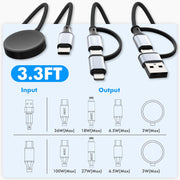 4-in-1 Multi Charging Cable – 100W USB-C Fast Charger for iPhone, Samsung & Apple Watch