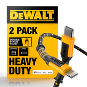 DEWALT Heavy Duty USB-C to Lightning Cables (2-Pack, 4ft) β Fast Charging, MFi Certified