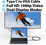 Cyberguys USB-C to VGA Cable – 1080P@60Hz Type-C to VGA Cord, Gold-Plated
