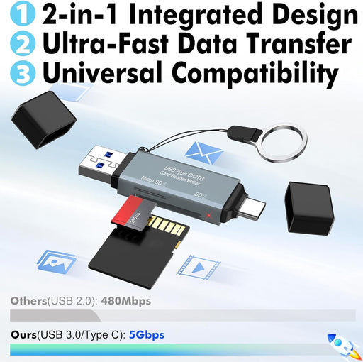 View full detailsCyberguys USB 3.0 SD Card Reader – Dual USB-C & USB-A, 5Gbps High-Speed Adapter