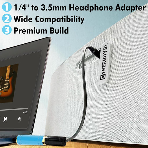 Cyberguys!Effortless Audio Conversion – Instantly convert a 3.5mm jack on phones, laptops, TVs, or gaming consoles into a 1/4" (6.35mm) female port to conn...