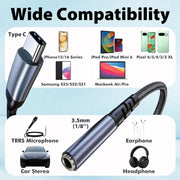 - Universal 3.5mm to Type C Compatibility – Easily connect your USB-C devices to traditional headphones, car stereos, home audio systems, or speakers. Supports both listening and microphone functionality